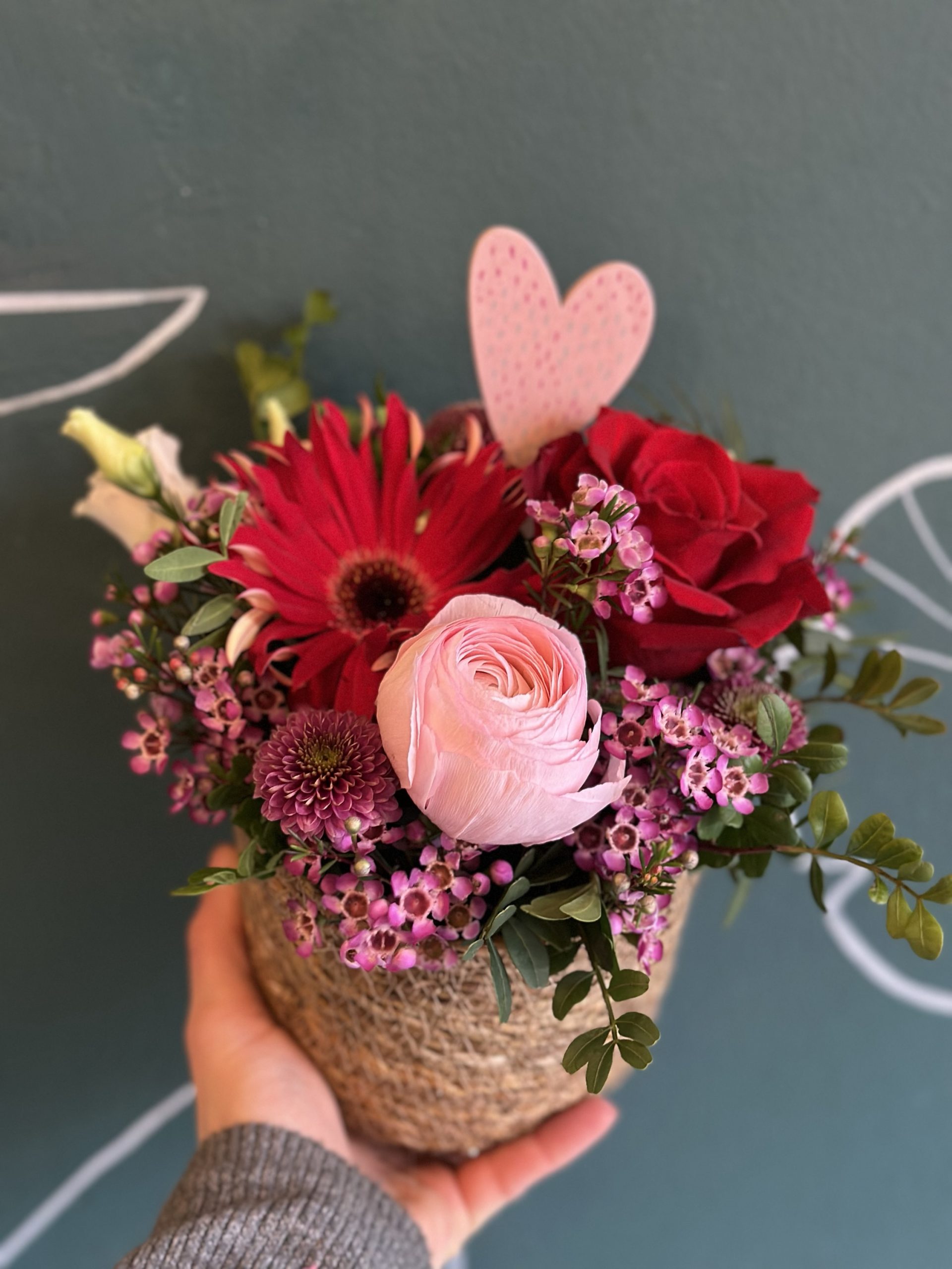 Arrangement dans les rouge passion, rose clair.